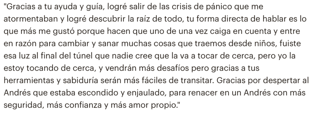 Para que no te pase lo mismo, te comparto algunos testimonios de personas que iniciaron proceso conmigo.